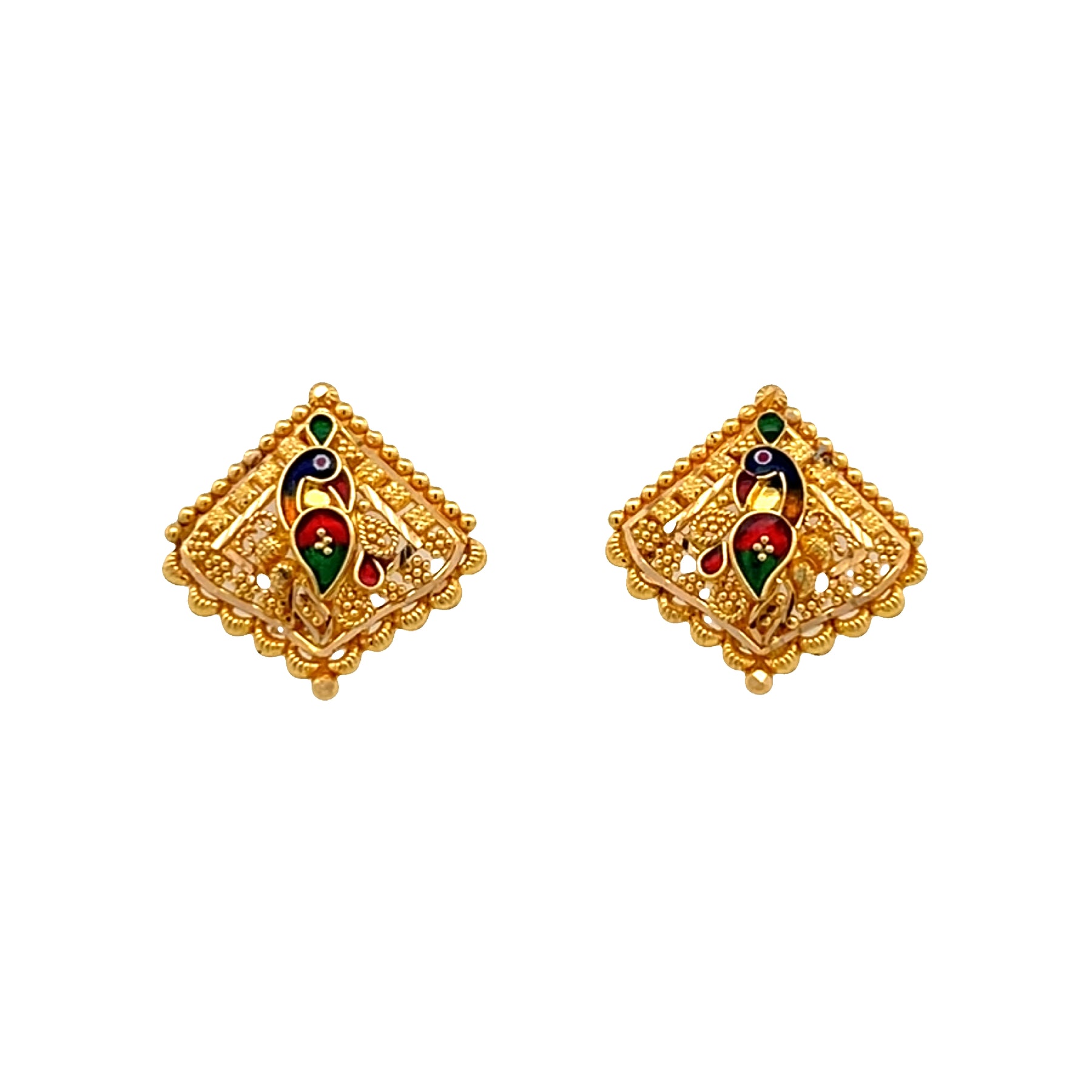Charming bird-themed stud earrings crafted in luxurious 22K yellow gold, offering a delicate and sophisticated accent to any ensemble with subtle avian elegance.