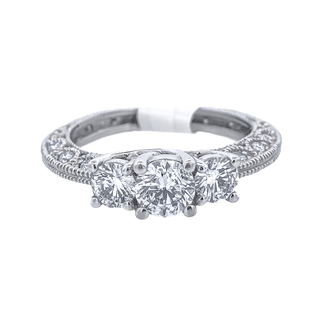 14K White Gold 1.25ct Three-Stone Diamond Engagement Ring